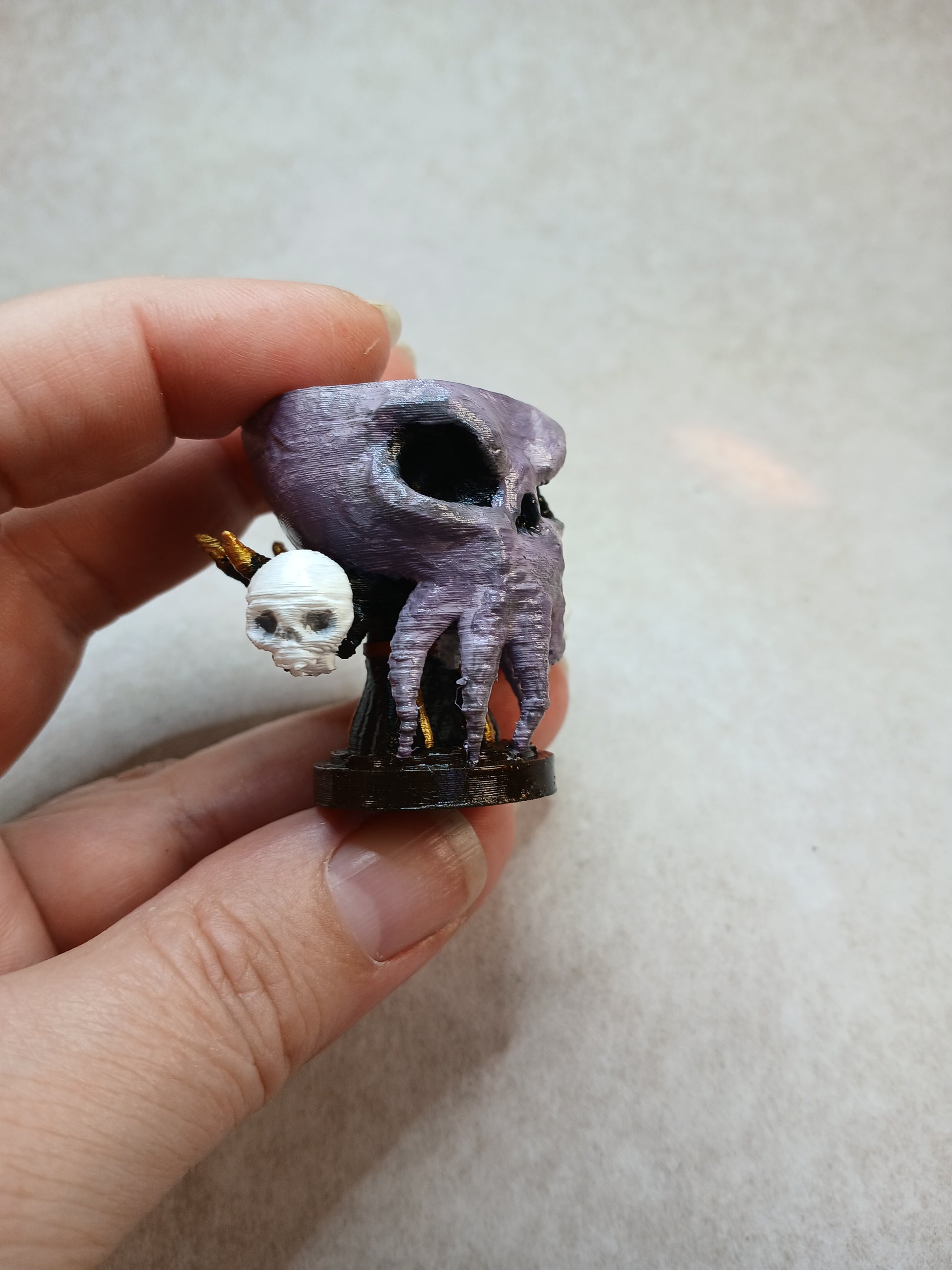 Dice guardian Mind flayer holding skulls.