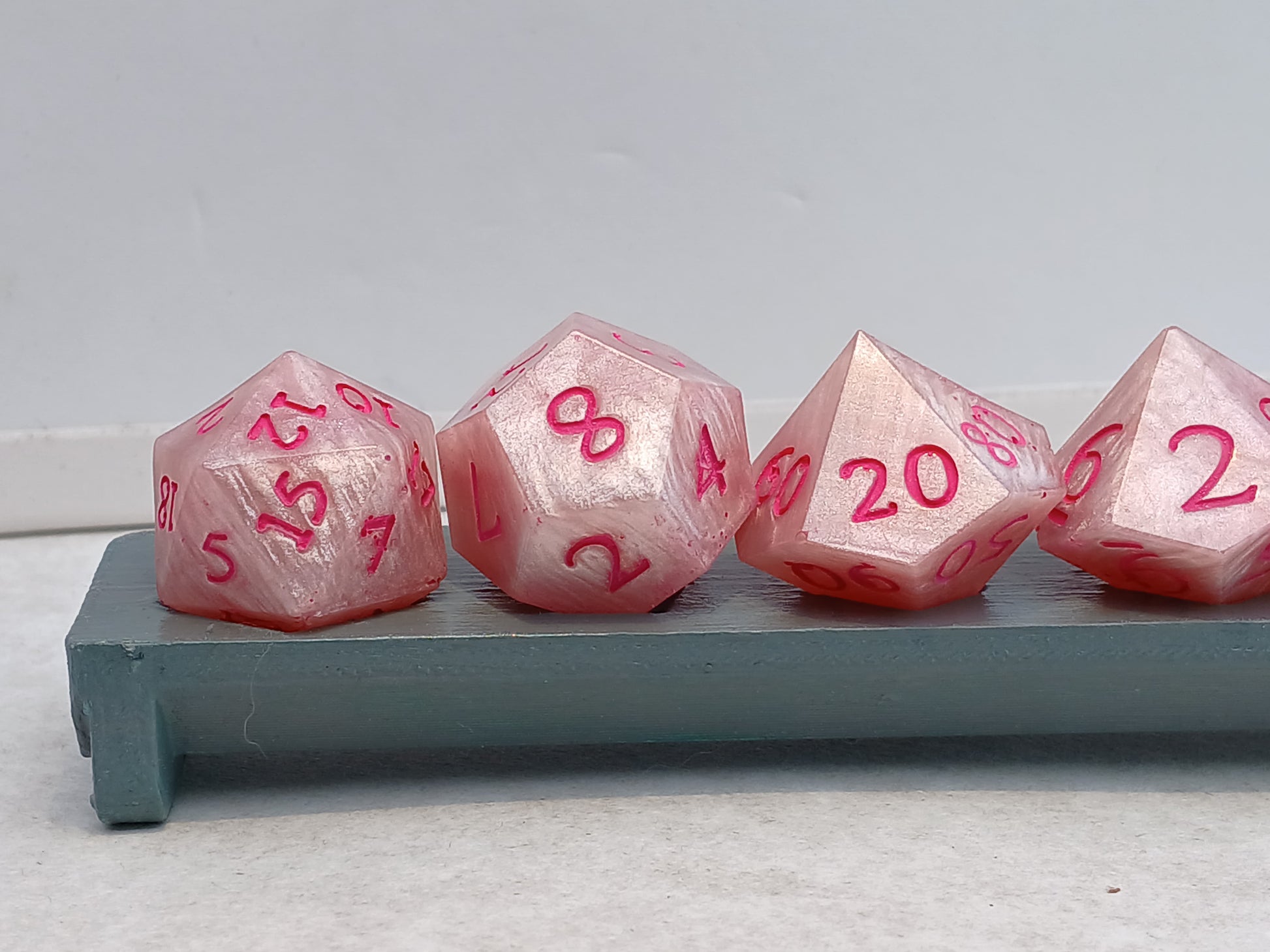Home made Dice in Resin. Pink with pink numbers.