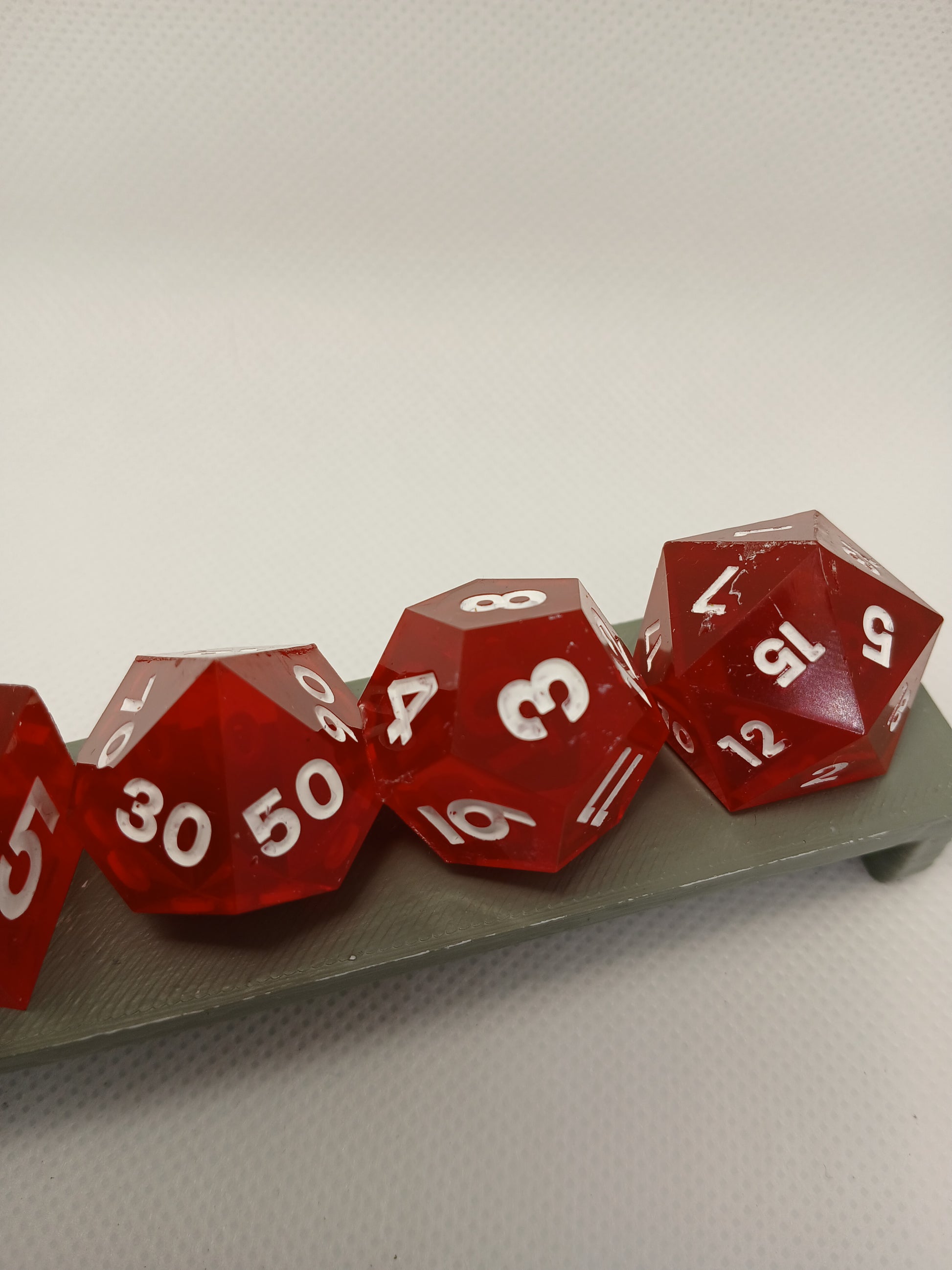 Home made Dice in Resin. Red with white numbers.