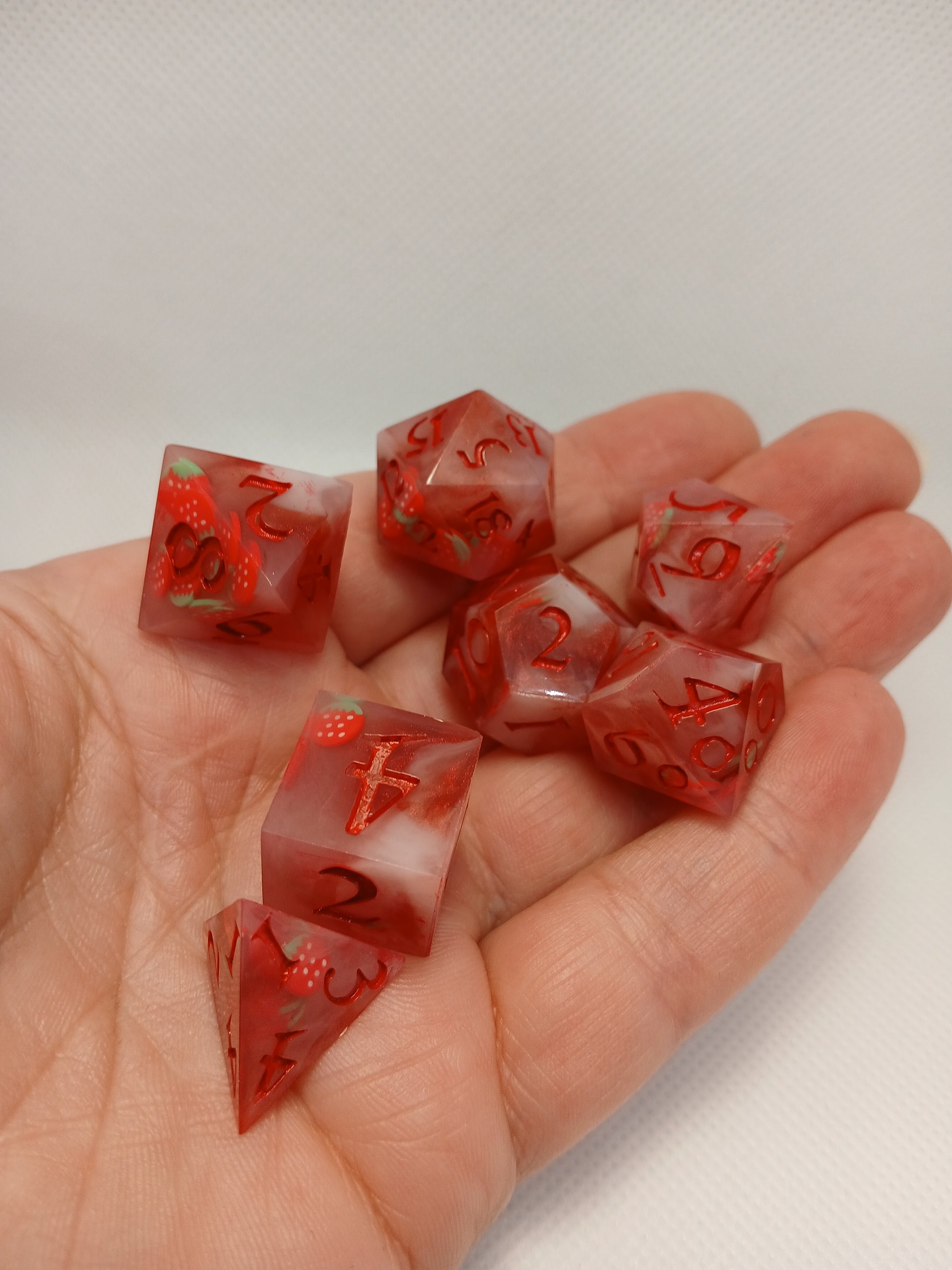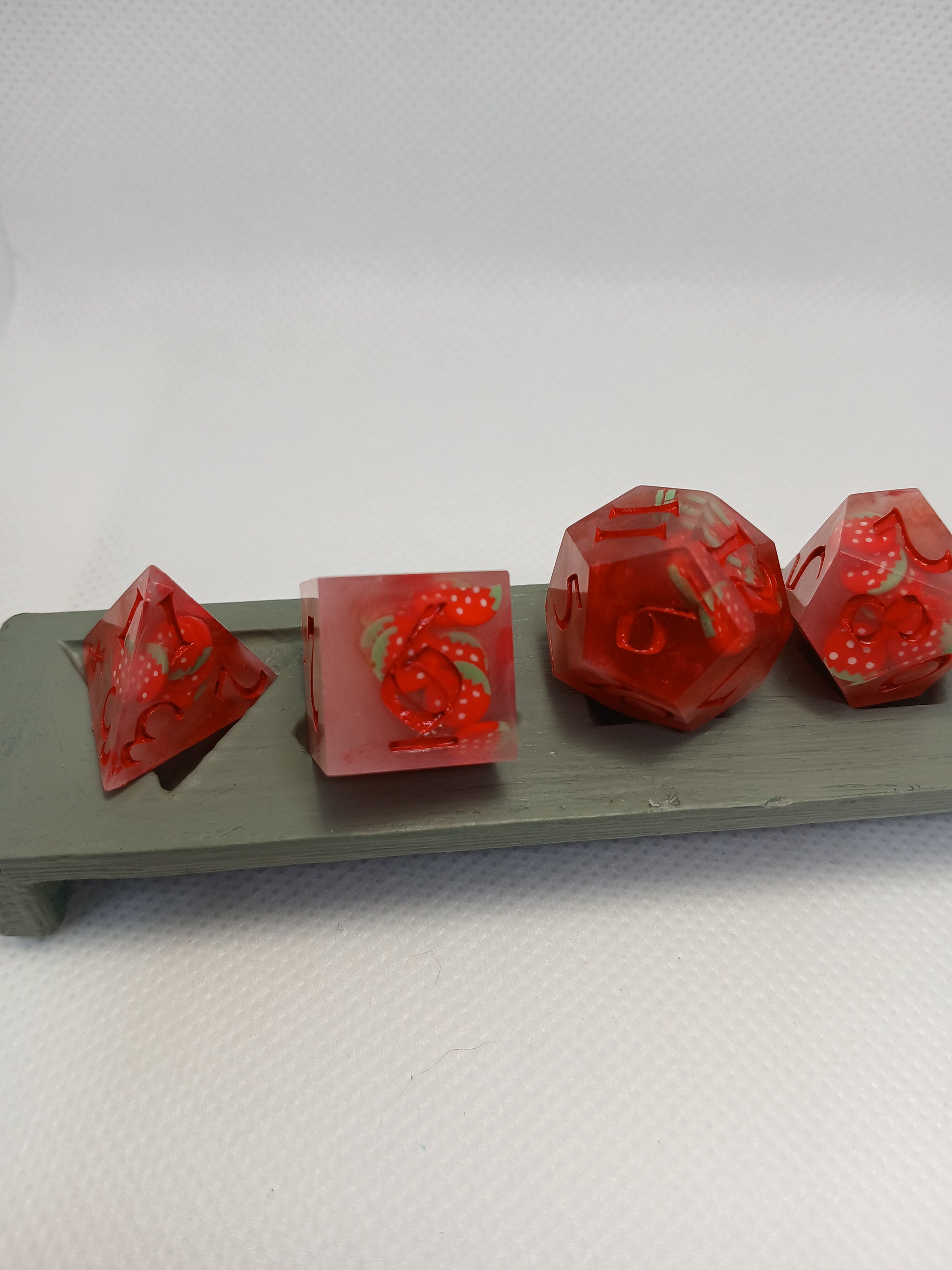 Home made Dice in Resin. "Strawberry- washitape" with white numbers.