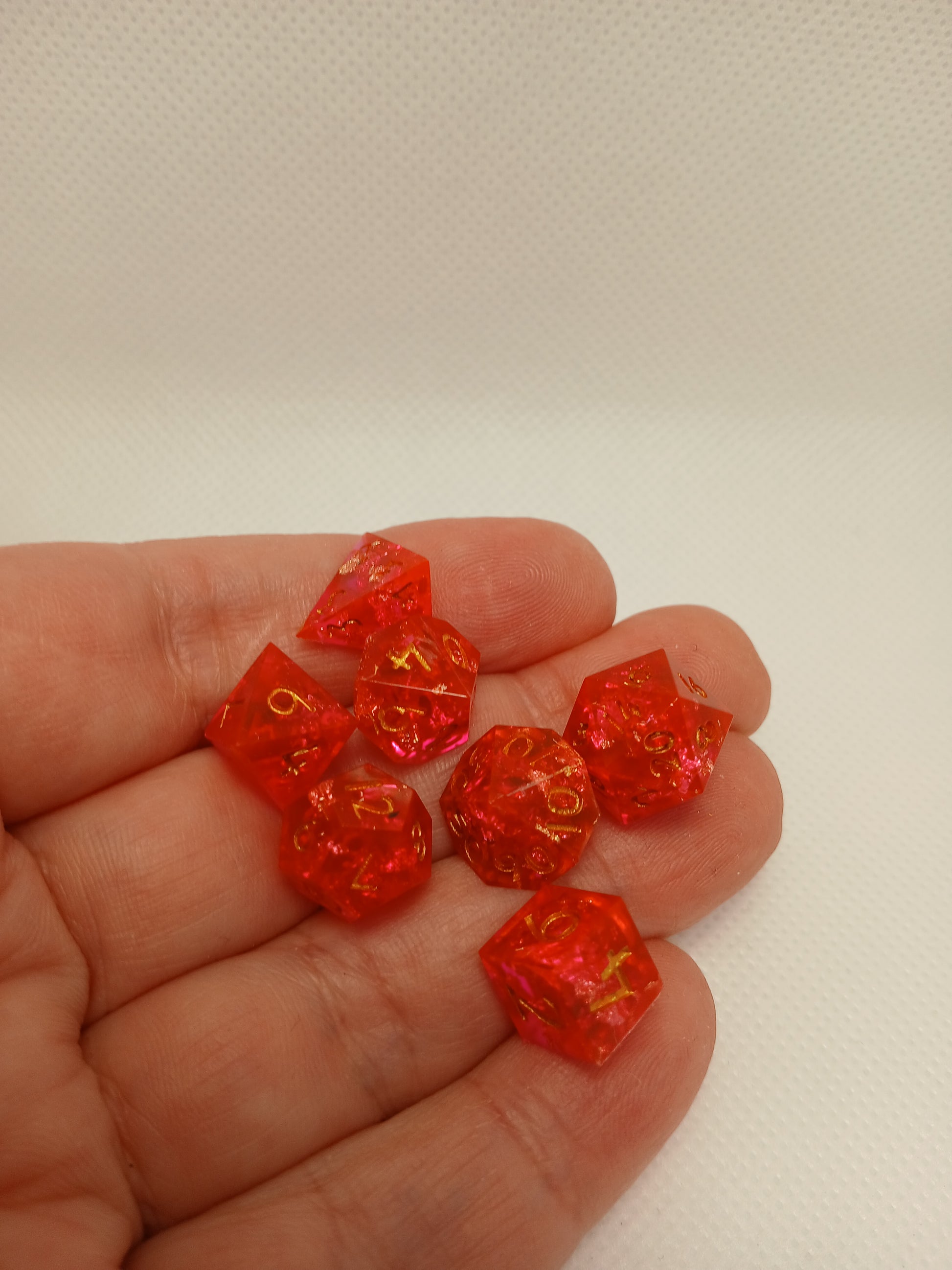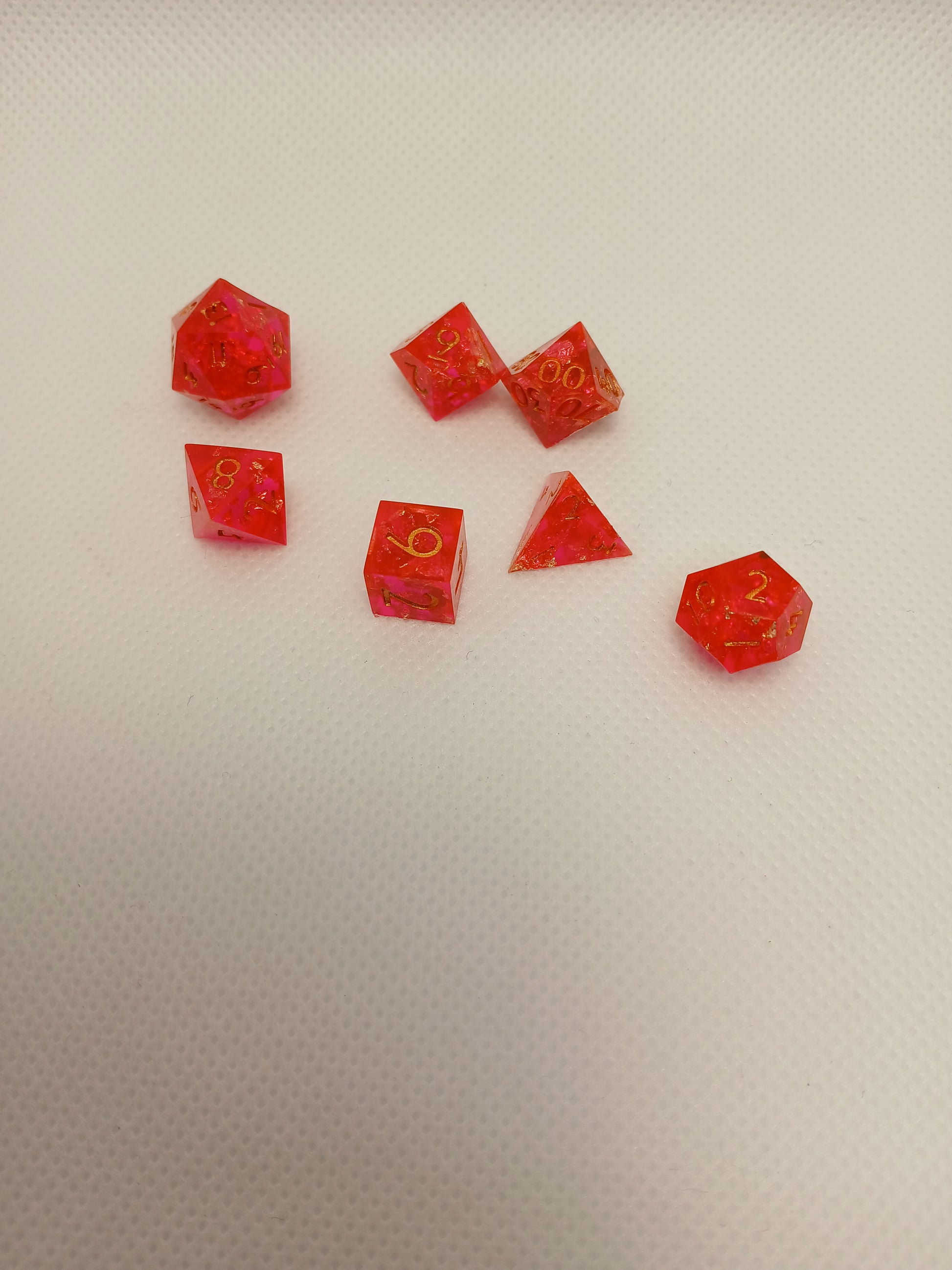 Dice in Resin, Pink with gold shimmer and numbers in gold.