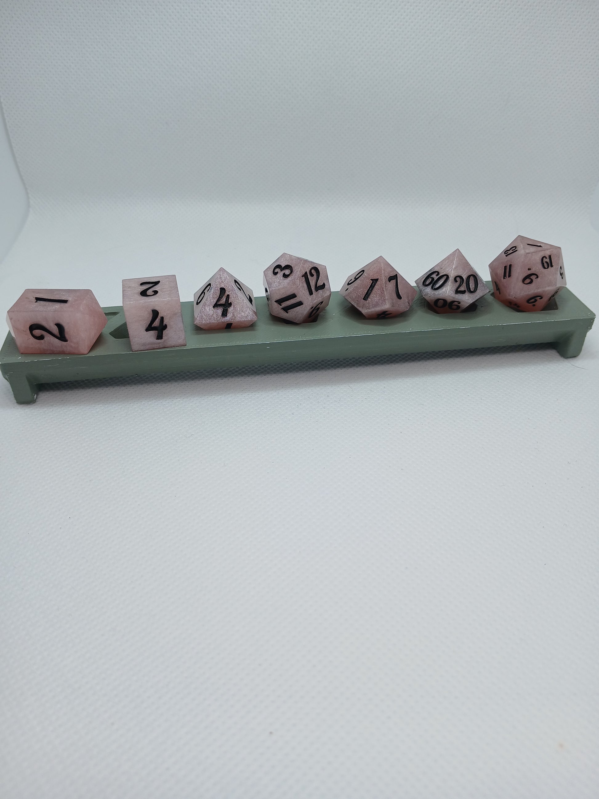 Home made Dice in Resin. Pink with black numbers.