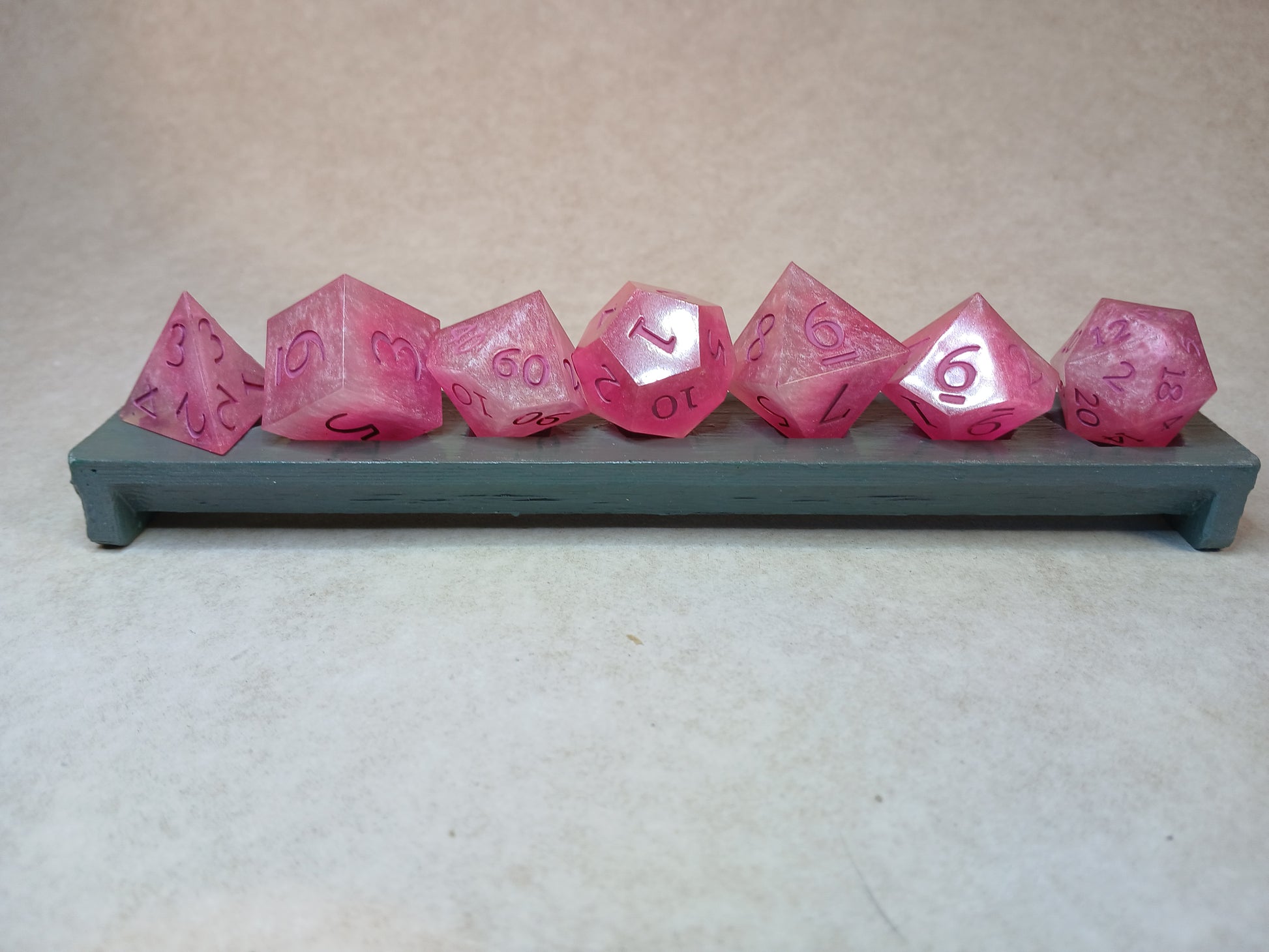Home made Dice in Resin, Pink with pink numbers.