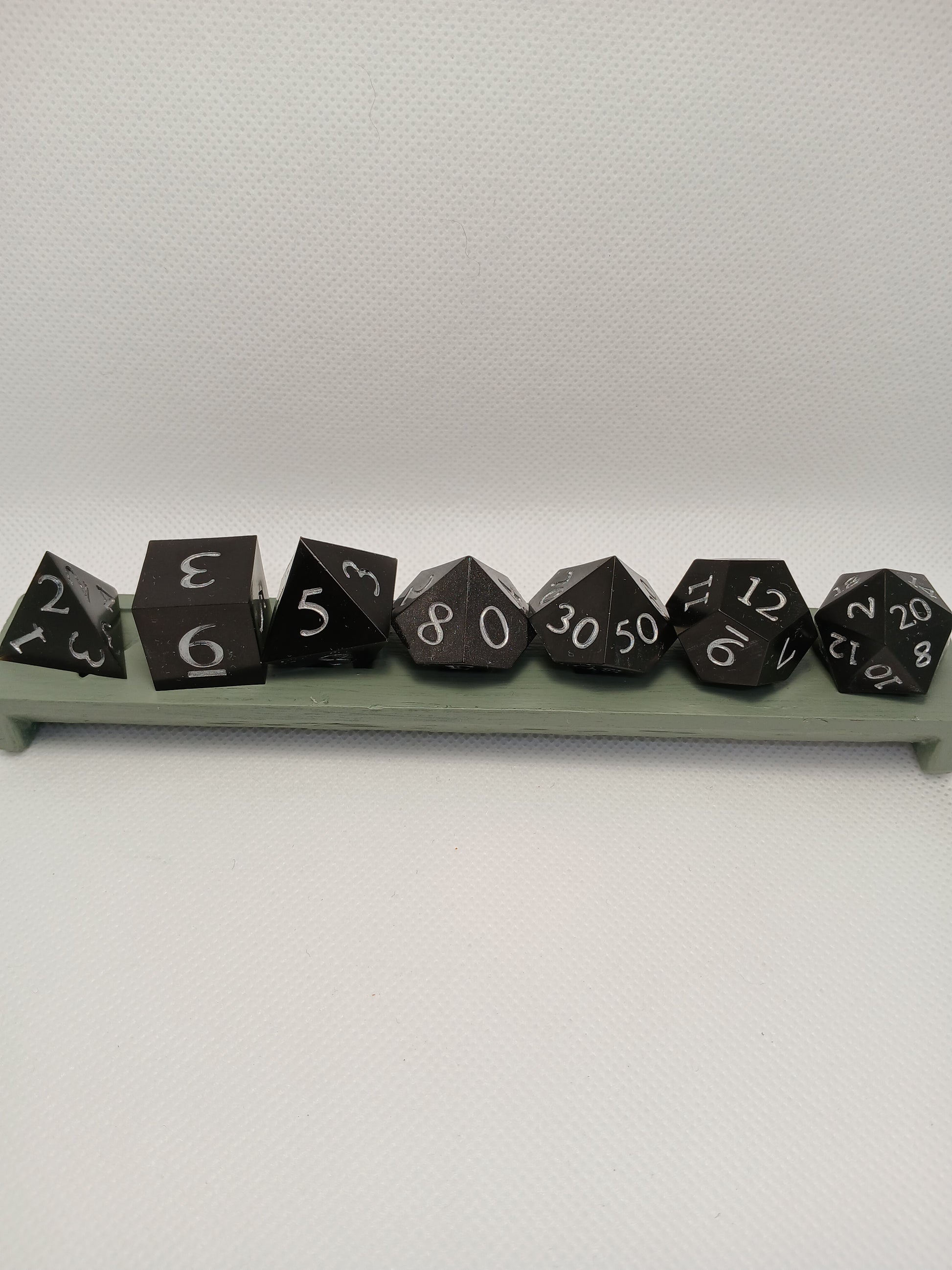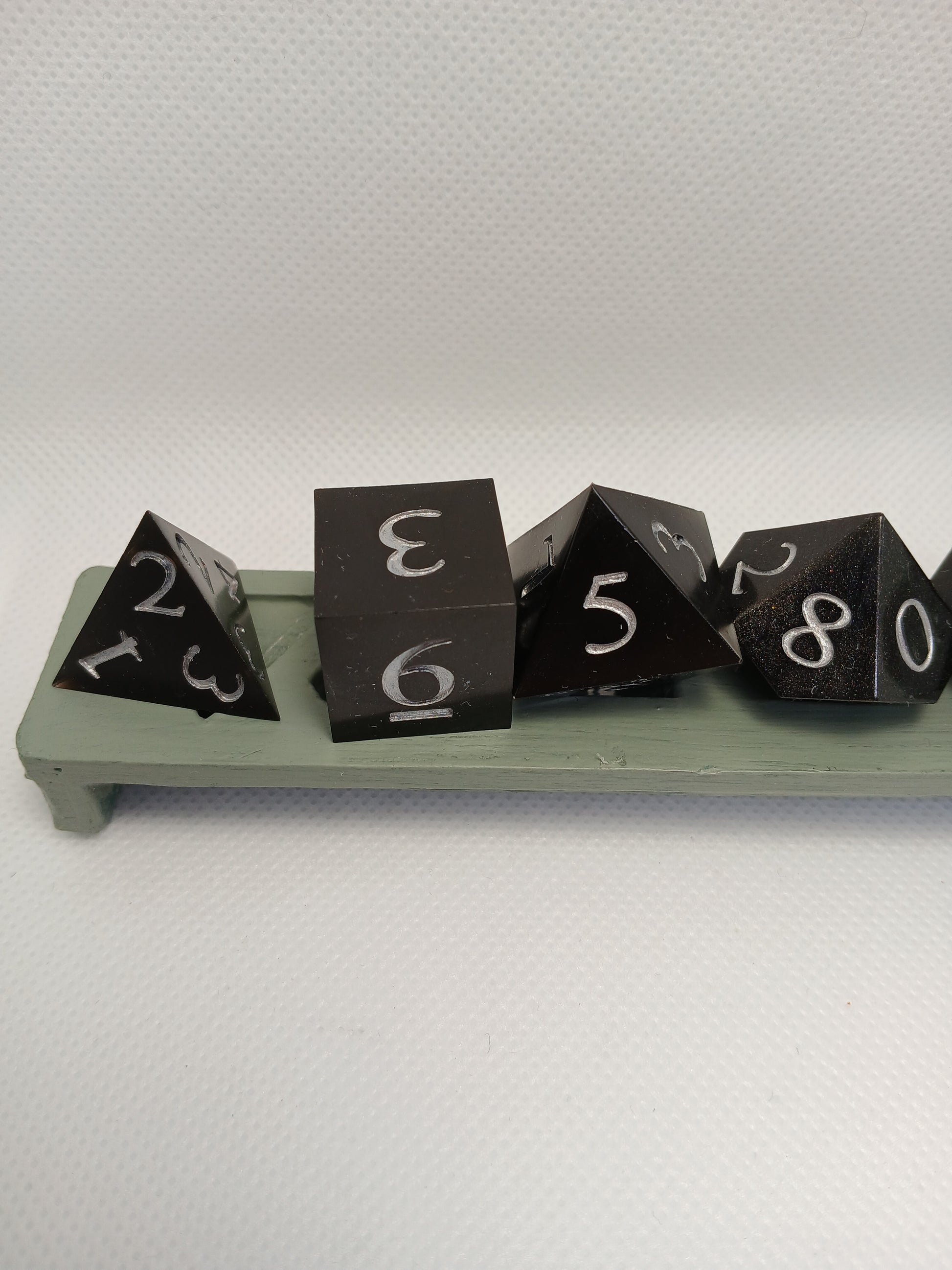 Dice in Resin. Black with numbers in silver.