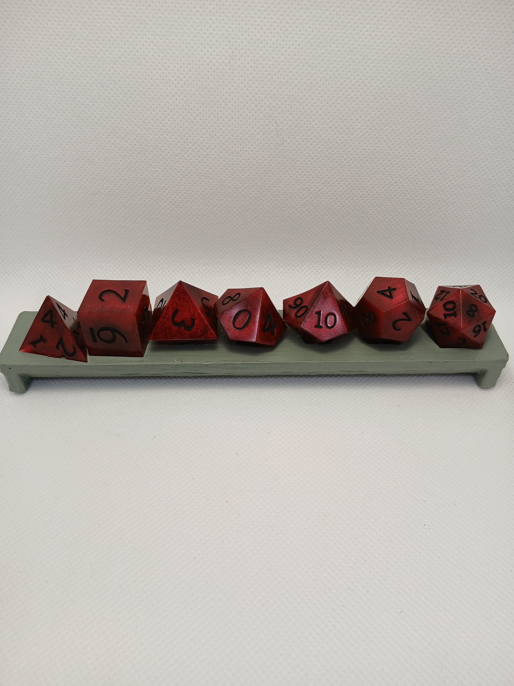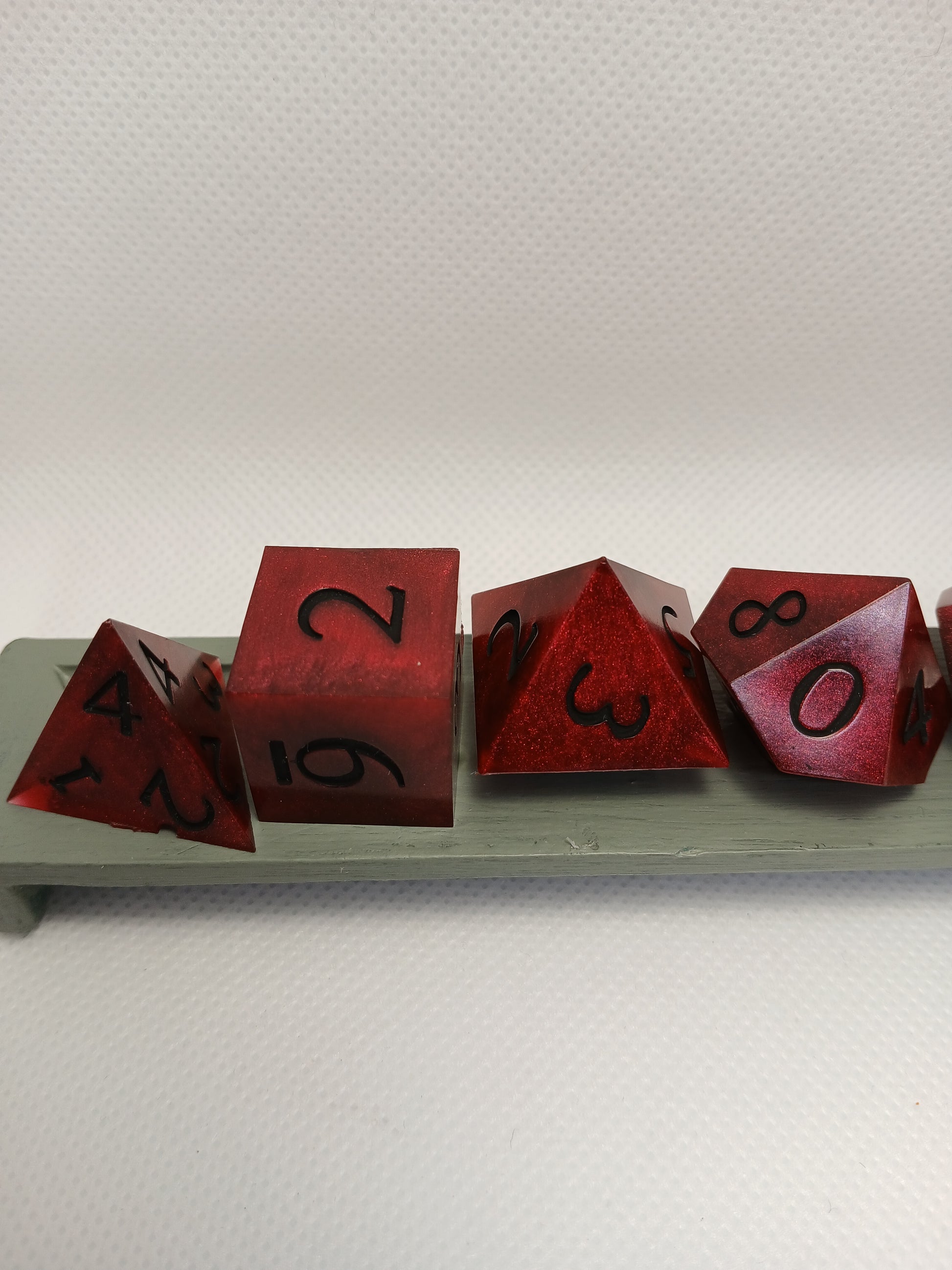 Dice in Resin. Dark red with black numbers.